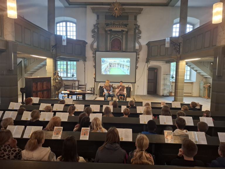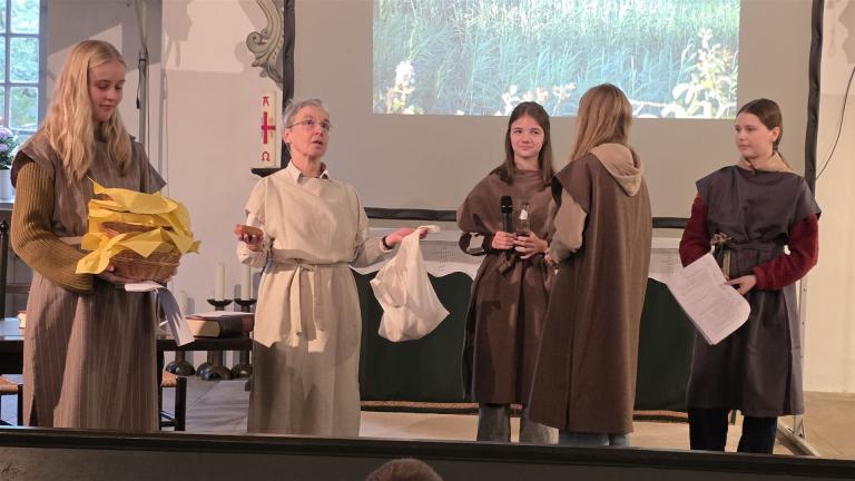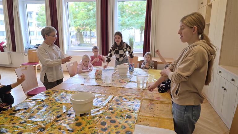 Pfarrern Lena Heucher-Baßfeld leitet durch die Woche, und für die musikalische Gestaltung sorgt Kantor Thomas Quellmalz am Klavier. „Tante Quentina“ und ihre Nichte „Nele“ sind die beiden Leitfiguren, die die gut 40 teilnehmenden Kinder auf ihrem Weg durch die biblischen Geschichten begleiten. Und anschließend wird in verschiedenen Altersgruppen viel Spannendes erlebt, das jeweils von den Gruppenteams gestaltet wird. Zwischendurch gibt's auch ein nahrhaftes Frühstück, und am Ende treffen sich alle nochmal in der St. Johannis-Kirche um von ihren Erlebnissen vom Vormittag zu berichten.