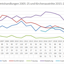 Am Ende jedes Jahres wird auch in unserer Gemeinde nachgezählt: Wie viele Taufen konnten wir feiern? Wie viele Hochzeiten? Wie viele Beerdigungen? Die Zahlen sind interessant und in mancher Hinsicht auch aufschlussreich, was die möglichen zukünftigen Entwicklungen unserer Gemeinde angeht.