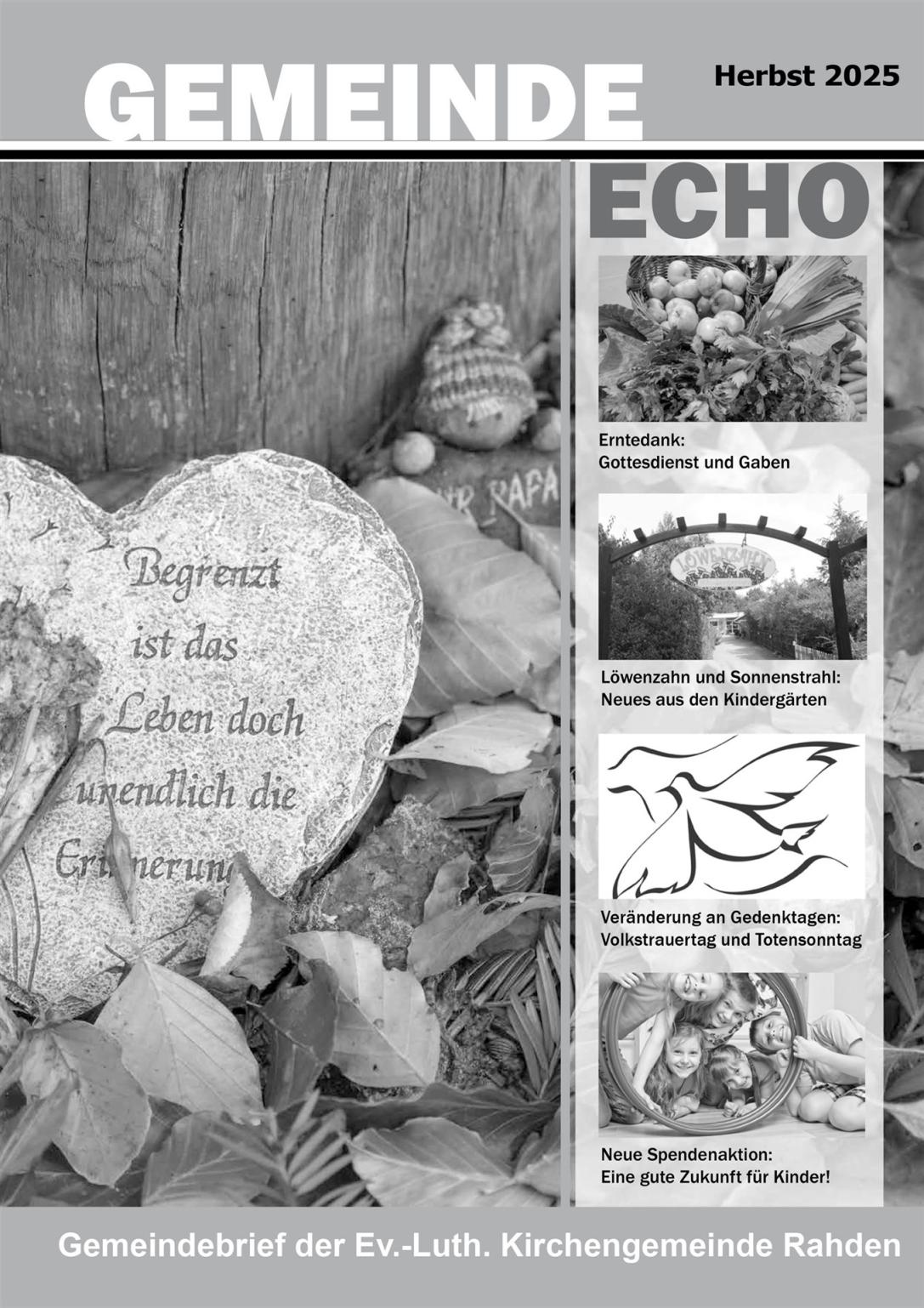 Während der Coronazeit, als ein Austragen der Hefte wegen der geltenden Hygieneregeln nicht möglich war, haben wir gute Erfahrungen damit gemacht, die Hefte in Kapellen, Geschäften und an anderen Rahdener Treffpunkten auszulegen, sodass sie von unseren Gemeindemitgliedern mit nach Hause genommen werden konnten. Außerdem nutzen immer mehr Menschen das Angebot, das aktuelle „Gemeinde-Echo“ auf unserer Homepage runterzuladen.