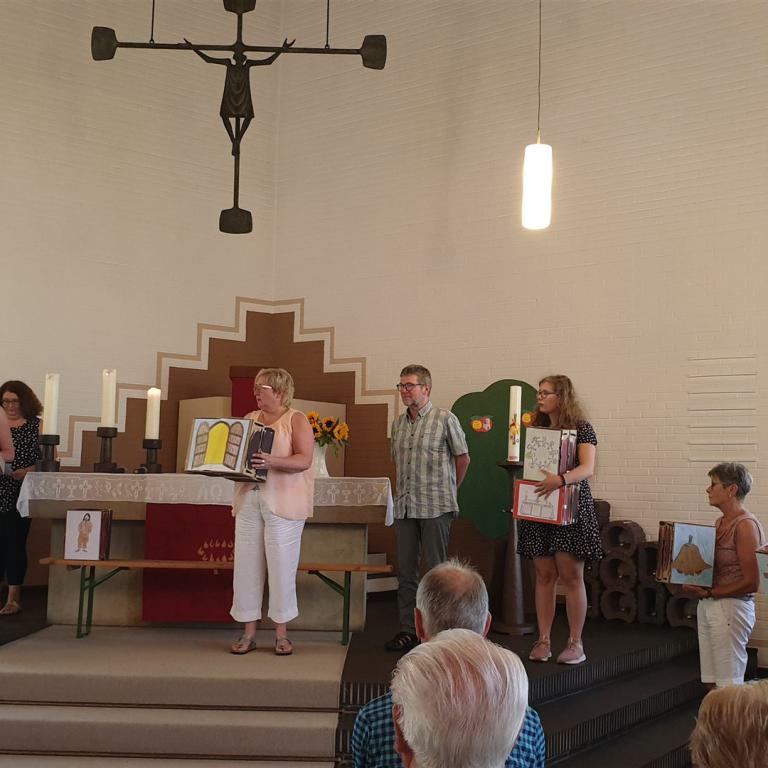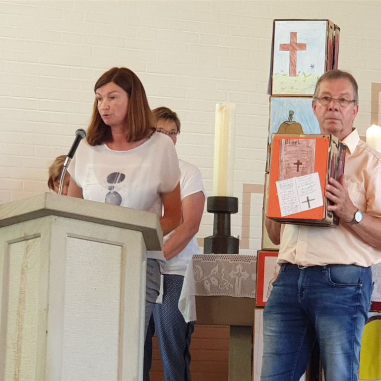 „Komm, bau ein Haus“ – unter diesem Motto stand das Gemeindefest zum 50-jährigen Geburtstag der Christuskirche Tonnenheide am Sonntag, dem 30. Juni. Der Auftakt erfolgte bereits am Samstag, dem 29. Juni, es wurde im Zelt auf dem Kirchenparkplatz fröhlich gefeiert. Am Sonntag war dann die ganze Gemeinde zum Gottesdienst für Jung und Alt in die Christuskirche eingeladen. Er wurde mitgestaltet von vielen Gemeindegliedern aller Altersgruppen und vom Posaunenchor unter der Leitung von Thomas Quellmalz. Die Predigt hielt Pfarrerin Strunk-Rohrbeck: "Wir feiern nicht, dass die Steine der Kirche 50 Jahre alt geworden sind, sondern dass Menschen diese Gemeinde seit damals mit Leben gefüllt haben."
